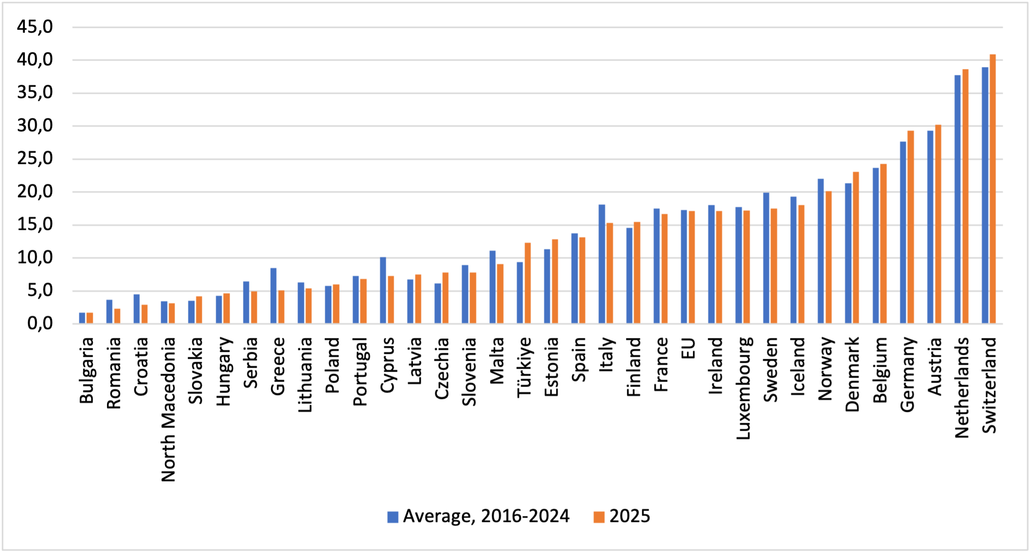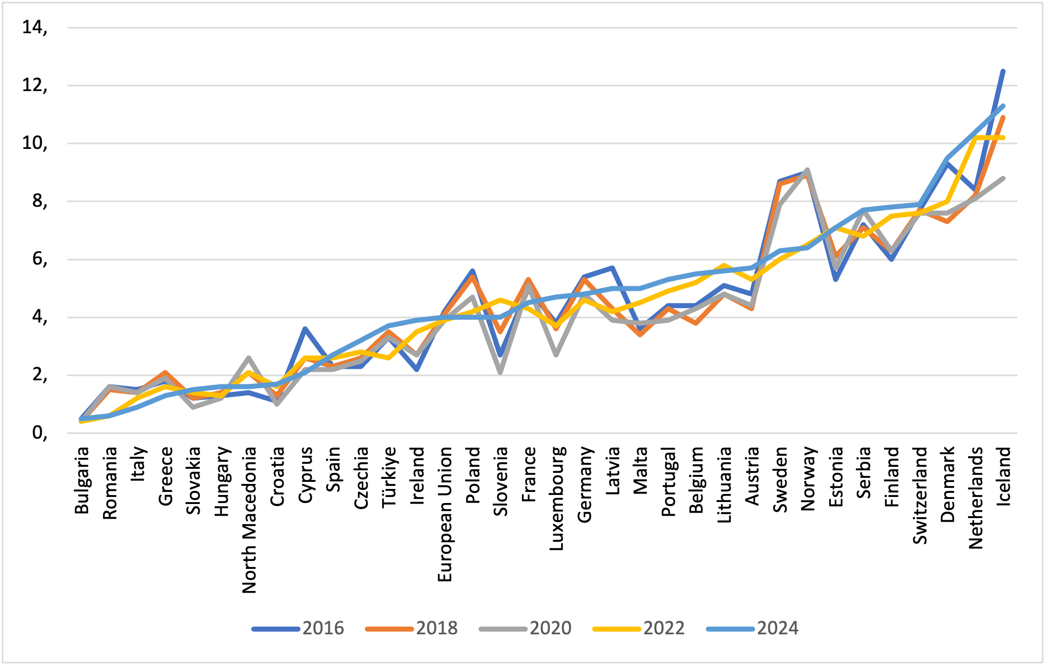 Fig. 3. Part-time employment rate, 2016-2024, 2025.